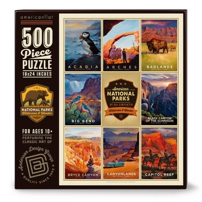 - This 18×24 inch, 500 piece count puzzle features “American National Parks 1” Art by Anderson Design Group.