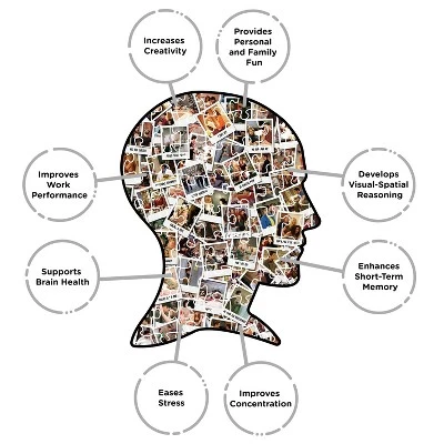 Precision Fit, Premium Quality, Glare Free, Virtually No Puzzle Dust. Increases creativity, Provides Personal and Family Fun, Develops Visual-Spatial Reasoning, Enhances Short-Term Memory, Improves Concentration, Eases Stress, Improves Work Performance, Supports Brain Health
