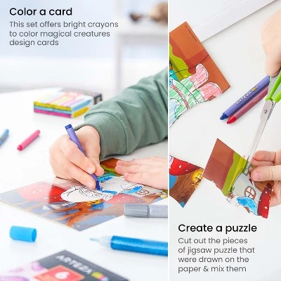 - Everything Included – Comes complete with 5 magical creatures design cards, 5 frames, 16 crayons, and 6 glitter glue tubes