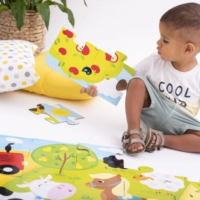 Introduce your little ones to farm animals with this appealing 35-piece jumbo floor puzzle. They will enjoy learning about animals, nature and colors while putting the pieces together to form this large puzzle that measures over 2 x 3 feet! The high-quality, thick cardboard pieces are the perfect size for little hands. The colorful keepsake box with handle makes this puzzle travel-friendly, easy-to-store and great to give as a special gift.