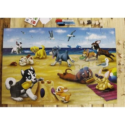 Package Includes48-Piece Jumbo Jigsaw Floor Puzzle Puppies on The Beach Puzzles Gift for Kids 3+ x 1Item Description48-Piece Jumbo Jigsaw Floor Puzzle Puppies on The Beach Puzzles Gift for Kids 3+Floor Puzzles for Kids – 48-Piece Giant Floor Puzzle, Puppies on The Beach Jumbo Jigsaw Puzzles for Toddlers Preschool, Toy Puzzles for Kids Ages 3-5, 2 x 3 FeetFLOOR PUZZLES FOR CHILDREN: Set includes 48 pieces of jumbo floor puzzles with vibrant and engaging illustrations in a combination of fascinating colors.HIGH QUALITY MATERIALS: Each puzzle piece is made of extra-thick, durable cardboard and printed with non-toxic ink in a glossy finish that is wear resistant to ensure longevityEDUCATIONAL PUZZLE GAME: Perfect educational learning tool to boost cognitive, problem solving skills, and hand eye-coordination; for kids age 3 and up.GIFT-TO-GO: Comes in a perfect gift box with a handle strap for convenient carrying and easy storage. Front of box features complete artwork for reference.PERFECT SIZE FOR KIDS: Measures approximately 1.9 x 2.9 feet when assembled.Juvale’s Floor Puzzle Set for Kids features vibrant and engaging artwork that provides endless fun plenty of storytelling opportunities. Made of heavyweight cardboard and printed with non-toxic, wear-resistant ink, this puzzle set is built to last. Teach your kids and help them develop skills and mental learning. This puzzle set comes in a gift-ready box complete with carry handles for convenient carrying and easy storage. Challenge young minds with this fun educational toy that provides immense enjoyment as well as important life skills.Product names are trademark of listed manufacturer or other owners, and are not trademarks of eForCity Corp. The manufacturer does not necessarily endorse use of these products.