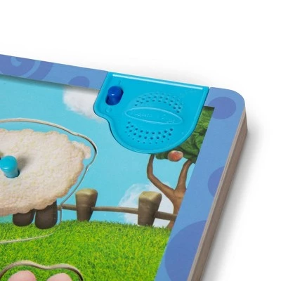 E-I-E-I-oh boy! Dance along to “Old MacDonald Had a Farm” with Blue and Magenta and their farm animal friends from Blue’s Clues & You! Lift the six wooden peg pieces to hear different sections of the song. The sturdy wooden puzzle board has pictures under the pieces for easy matching, and an on/off switch to give a quiet play option. Blue’s Clues & You! promotes kindergarten-readiness, inspiring confidence, empowerment, and kindness in preschoolers as they develop their problem-solving, social, and developmental skills through play.