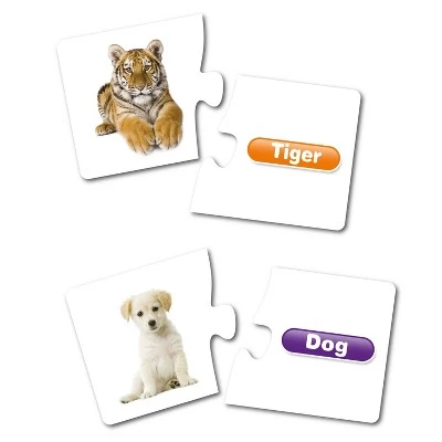 Featuring 30 different animals and 60 pieces! Only the correct pieces in a pair will line up and fit together, so children will continue trying different combinations until they find a matching set. Years of research show that visual approach learning techniques promote literacy development and more accurate word association. Make a fun game of learning new words and encourage reading at an early age. Created especially for children ages 3 and up. Loved by teachers and homeschoolers.