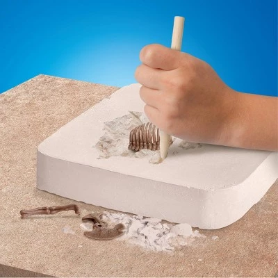 - EXCAVATION TOOLS: Chip away at the excavation kit’s plaster rock to reveal replica bones from a 15-piece T-Rex. The provided tool kit has a hammer, chisel & brush.
