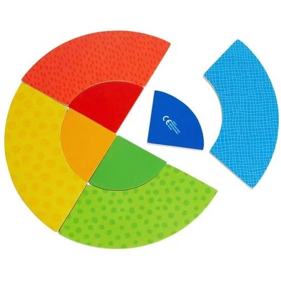 - The two-sided wooden pieces have colors on the back that match up with the pictures on the front. Children can learn color-matching and color compliments.