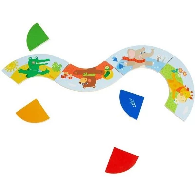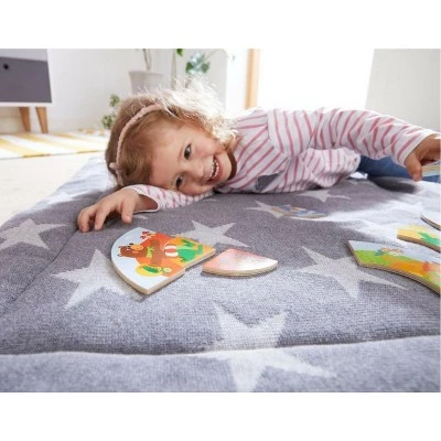 The giraffe, crocodile, bear and elephant will help children to learn the different seasons. Which feet belong to which body? Children who already know their colors will have an advantage. Contents: 8 pieces. Material: plywood. Dimensions: L 7.9 x W 7.9 x H 0.2“. Cleaning Instructions: HABA recommends using a cloth lightly dampened with warm water. If you wish to disinfect the toy with a cleaning agent, use a small amount of either water and a mild dish soap or a water & vinegar essence mix. Both options work extremely well in destroying bacteria and cleaning wooden toys. After cleaning, wipe the toy dry with a clean cloth. Remember, Wood is a natural material that soaks in moisture. Do not ever submerse wooden toys in water or place in a dishwasher. Disinfectants (even organic baby wipes), should not be used as they can damage the water based protective coatings applied to protect the stains or paints beneath.