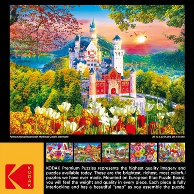 Kodak Premium Puzzles feature the brightest and sharpest puzzle images. Featuring fully interlocking pieces and mounted on a Premium European puzzle board, each piece is a joy to assemble. This image of the Famous Neuschwanstein Castle in Bavaria is stunning. Wonderful colors and rich details throughout the entire picture. No matter how many puzzles you have assembled, you are sure to find this puzzle a winner!