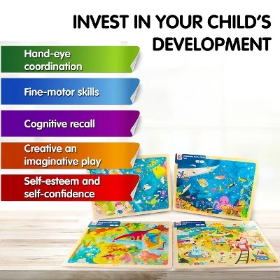 - INTERACTIVE 48-PIECE WOODEN PUZZLE SET: Kids are always learning, touching, and observing, which is why our educational puzzle kit will engage all of their senses. Watch them sit down and problem-solve as they sift through 48 differently colored puzzle pieces, made with premium wood and durable construction