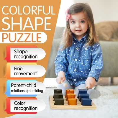 PRODUCT DESCRIPTION:Learning on the go, made easy with your own bespoke wooden child’s puzzle.SHAPE SORTING EDUCATIONKids learn most effectively through learning, which is why we’ve made a tool that is both fun and educational. Your kids will quiet down as they focus on the different shapes and colors, familiarizing themselves with different textures, formations, organization, and more. It’s a great way to engage their mind and motor skills.COLORFUL SHAPE PUZZLEWhen your kid plays with our puzzle set, they will be experiencing the following development:·Shape recognition ·Fine movement·Parent-child relationship building·Color recognitionNothing can compare to the fleeting, precious moments of bonding with your child. Our interactive, shape sorting puzzle is something you can both do together. Your child will never forget it.SAFETY GUARANTEEDWe have carefully sourced non-toxic, durable wood and water-based paint that is BPA-free for you and your family. We want you to be safe at all times.