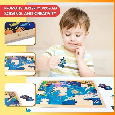 PRODUCT DESCRIPTION: The Premium 100% Wooden Underwater Puzzle is Here!Made by Leo & Friends, we鈥檝e created a puzzle that will challenge, delight, and inspire your little one to problem solve and create, all at the same time.Invest In Your Child’s Learning And DevelopmentSay goodbye to phone screens and laptops. With our puzzle, your child will be encouraged to dream up their own solution, contributing to their personal development in a way that is critical. Each one of our puzzle pieces is small and compact, so toddler hands can easily grab, shift and place the pieces where they belong. With vibrant gorgeous colors that an oceanic scene filled with submarines, octopus, scuba divers, your kids won’t be able to get enough of this puzzle.INVEST IN YOUR CHILD鈥橲 DEVELOPMENTWhen your child sits down to play with this 48-piece puzzle, they will be developing the following:路 Hand-eye coordination路 Fine-motor skills路 Cognitive recall路 Creative and imaginative play路 Self-esteem and self-confidence A TOY THAT ENCOURAGES INTERACTIONThis social kid鈥檚 puzzle set is something they can do with you, their siblings, and their friends. That means it will help them develop their social skills along the way, as well.THE GOLD STANDARD IN PLAYWe care about providing your kid with educational toys that inspire them to innovate and create. Our underwater puzzle was made with the awe and wonder of childhood in mind.WE CARE ABOUT YOUR SAFETYNon-toxic, sustainable wood and water-based paint were used in the making of this product. Your safety is of the utmost importance to us.