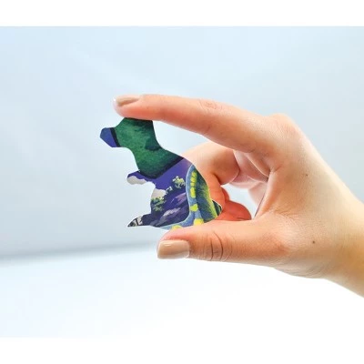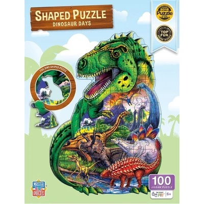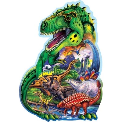 - Shaped puzzle features ancient dinosaurs roaming the land