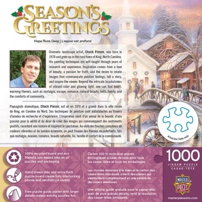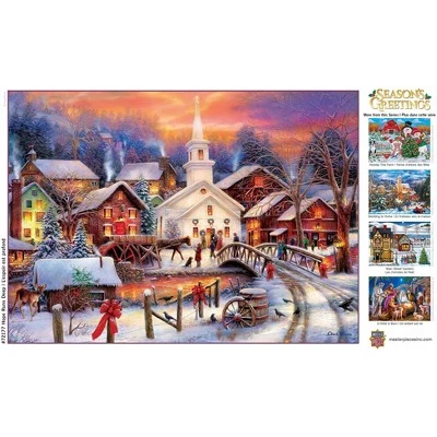 - These MasterPieces 19.25″ x 26.75″ 1000pc of Home for the Hplidays features a new snow falling on the town church on Christmas Eve. Holiday Puzzles are the perfect way to get into the holiday spirit, and the perfect holiday presents for friends and family. Cozy up around the table for some holiday family fun! To reduce their impact on our environment, the chipboard used in these puzzles is made of recycled material.