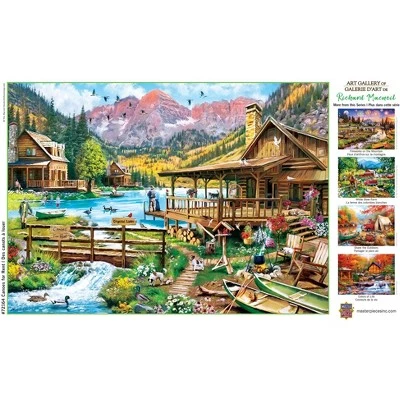 These MasterPieces 19.25″ x 26.75″ 1000pc Richard McNeil puzzles. Take a trip across the crystal clear mountain lake in a canoe for rent. Linen Finish on Packaging and Puzzle reduces and glare and creates a timeless classic look. To reduce their impact on our environment, the chipboard used in these puzzles is made of recycled material.