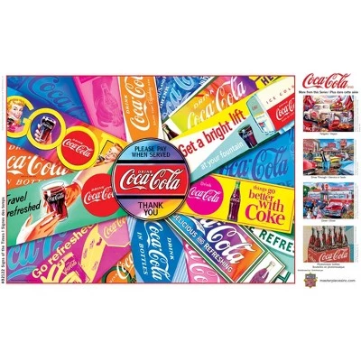 - These MasterPieces 19.25″ x 26.75″ 1000pc Childhood Dreams Puzzles. Coca-Cola brings all the eras together with this fun collage of popular tag-lines through the ages. Nothing will bring a family closer than these heart-warming, family-friendly puzzles! To reduce their impact on our environment, the chipboard used in these puzzles is made of recycled material.