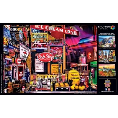 - This MasterPieces 19.25″ x 26.75″ 1000pc Shutter Speed Puzzle features Gas Pump Heaven Museum and ice Cream Parlour. To reduce its impact on our environment, the chipboard used in this puzzle is made of recycled material.