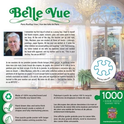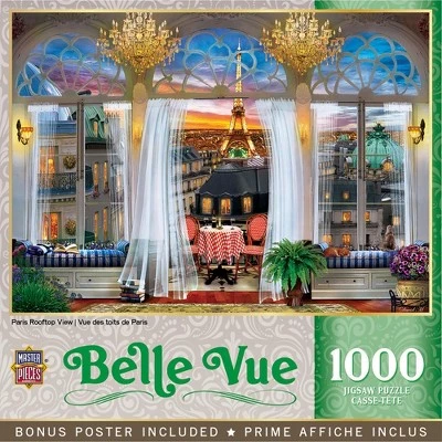 - This MasterPieces 19.25″ x 26.75″ 1000 Piece Puzzle is the perfect blend of exciting and adorable. The soft breeze blows over the terrace on Parisian night . To reduce its impact on our environment, the chipboard used in this puzzle is made of recycled material.
