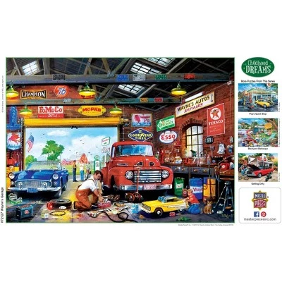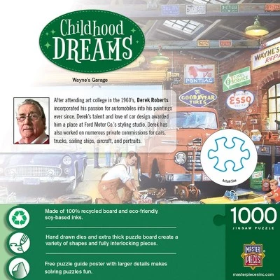 This MasterPieces 19.25″ x 26.75″ 1000pc Childhood Dreams Puzzles has a Grandfather and boy spending an afternoon working and teaching in Wayne’s Garage. Nothing will bring a family closer than these heart-warming, family-friendly puzzles! To reduce their impact on our environment, the chipboard used in these puzzles is made of recycled material.