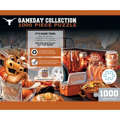 This MasterPieces NCAA 1000pc 19.25″ x 26.75″ University of Texas Puzzle is perfect for any Texas fanatic. Now fans can play all year long! To reduce its impact on our environment, the chipboard used in this puzzle is made of recycled material.