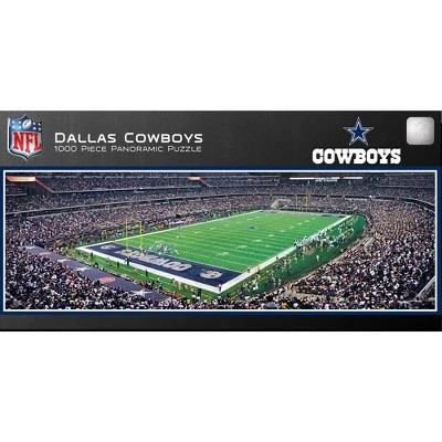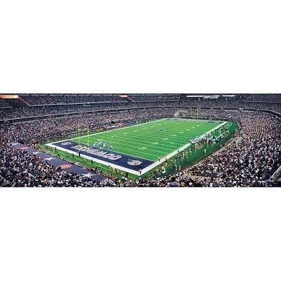 This MasterPieces NFL 1000pc 13″ x 39″ Panoramic Dallas Cowboys Puzzle features the view of the Dallas Cowboys’ AT&T Stadium with such incredible detail that it’s common for you to find yourself as part of the photograph. This puzzle is proudly made in the USA. To reduce its impact on our environment, the chipboard used in this puzzle is made of recycled material.