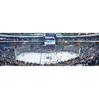 This MasterPieces NHL 1000pc 13″ x 39″ Panoramic St. Louis Blues Puzzle features the view from the sky box seat of the St. Louis Blues’ Scottrade Center rink with such incredible detail that it’s common for you to find yourself as part of the photograph! To reduce its impact on our environment, the chipboard used in this puzzle is made of recycled material.