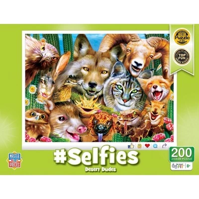 This Selfies puzzle full of Desert Animals is the perfect challenge for older kids. Desert Dudes both dangerous and cuddly come together for a Selfie surrounded by colorful cactus and flowers. This puzzle is 200 pieces and 19 inches x 14 inches in size. Look for The Right Fit® puzzles collection and make sure your little one gets the correct piece count and size for a good challenge for their age. This puzzle is the right fit for ages 8+.