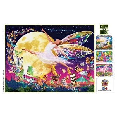 This MasterPieces 18″ x 24″ 300PC EZ Grip Glow-in-the-Dark Puzzle offers vibrant, exciting scenes, both day and night! The Puzzle Moon Fairy created by the talented Michael Alan Searle, features a dancing fairy so elegantly leaping wanderlust around with several vibrant butterflies across the moonlit evening sky. For the past twenty-five years Michael Alan Searle has enjoyed a successful career as a freelance illustrator, designer, and creative director. His career has taken him from the tropical islands of Hawaii to the European Continent. The EZ-Grip die-cut used to make this puzzle offers larger puzzle pieces for easier visual and grip that snap together perfectly, without compromising image quality. To reduce their impact on our environment, the chipboard used in these puzzles is made of recycled material.
