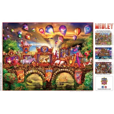 This MasterPieces 18″ x 24″ Medley 300PC EZ Grip Puzzle. A colorful carnival parade travels overland to the next magical castle. The EZ-Grip technology used to make this puzzle offers larger puzzle pieces that snap together perfectly, without compromising image quality. To reduce its impact on our environment, the chipboard used in this puzzle is made of recycled material.