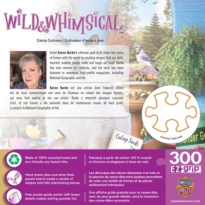 MasterPieces’ 18″ x 24″ Wild & Whimsical 300PC EZ Grip Puzzle is the perfect blend of exciting and adorable. A precious fluffy kitten scoops potting soil to tend her summer garden. She’s preparing a fresh planting of catnip with help from her bird friends. Join in the frivolity with this fun, colorful puzzle! The EZ-Grip die-cut used to make this puzzle offers larger puzzle pieces for easier visual and grip that snap together perfectly, without compromising image quality. To reduce their impact on our environment, the chipboard used in these puzzles is made of recycled material.