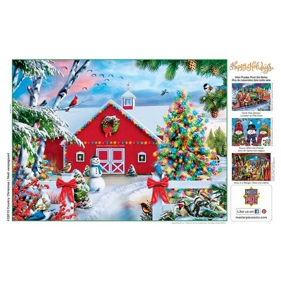 This MasterPieces 18″ x 24″ Holiday 300PC EZ Grip Puzzle depicts a festive Christmas Barn decorated with bright colorful lights and a festive snowman. It was painted by the talented Alan Giana, whose paintings of colorful paths, charming country hideaways, and tranquil coastal gateways are touching the hearts of people everywhere. His inspiring paintings now appear on hundreds of products that are sold around the world. Alan lives with his loving wife, Pamela, in the picturesque town of Simsbury, Connecticut. The EZ-Grip technology used to make this puzzle offers larger puzzle pieces that snap together perfectly, without compromising image quality. To reduce its impact on our environment, the chipboard used in this puzzle is made of recycled material.