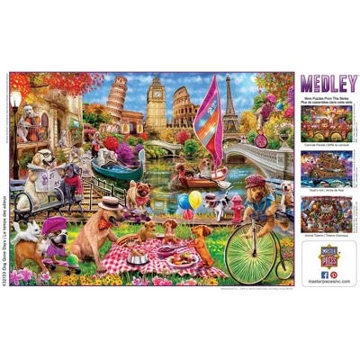 This MasterPieces 18″ x 24″ Medley 300PC EZ Grip Puzzle. Silly dogs are running loose among the greatest landmarks of the world. The EZ-Grip technology used to make this puzzle offers larger puzzle pieces that snap together perfectly, without compromising image quality. To reduce its impact on our environment, the chipboard used in this puzzle is made of recycled material.
