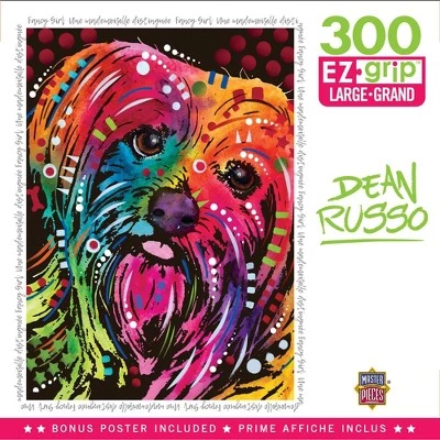 This MasterPieces 18″ x 24″ Dean Russo 300PC EZ Grip Puzzle is the perfect blend of exciting and adorable. Dean Russo Art Studio has a sincere dedication to animal rescue, and has participated in charity auctions, donations and fund-raising events. Through inspiring messages and bright prints, Dean Russo’s work is sure to brighten anyone’s day. Each puzzle has extra large pieces for a fun and quick night of puzzling with the family or group of friends. The EZ-Grip technology used to make this puzzle offers larger puzzle pieces that snap together perfectly, without compromising image quality. To reduce its impact on our environment, the chipboard used in this puzzle is made of recycled material.