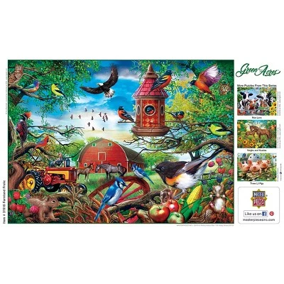 This MasterPieces 18″ x 24″ 300pc EZ Grip Green Acres Collection features images of farm town favorite animals beautifully hand-painted by talented artist Ciro Marchetti. Both the packaging and puzzles in this series are made of linen paper. The linen texture matte feel helps prevent glare and makes for an easy to use high-quality puzzling experience. The EZ-Grip die-cut used to make this puzzle offers larger puzzle pieces that snap together perfectly, without compromising image quality. To reduce its impact on our environment, the chipboard used in this puzzle is made of recycled material.