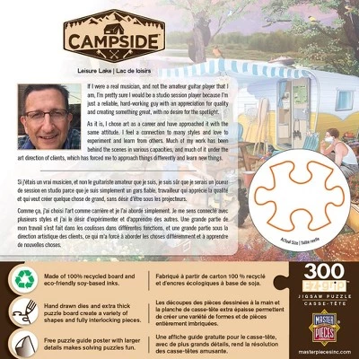 This MasterPieces 18″ x 24″ 300EZ Campside puzzle was painted by Chris Bigelow. Enjoy a leisurely day at the lake with family and friends with a colorful 750pc puzzle. To reduce its impact on our environment, the chipboard used in this puzzle is made of recycled material.