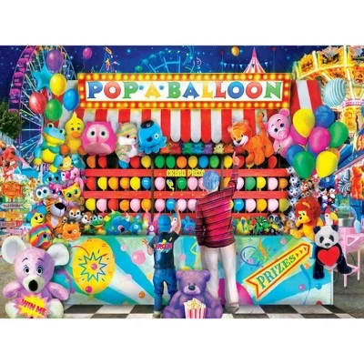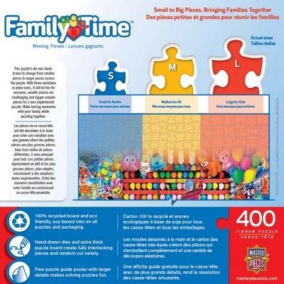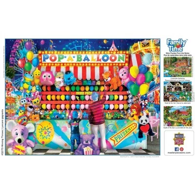 This 400pc Family Hour Collection are the perfect puzzles to enjoy with the family. Grandad and young boy toss darts at the balloons at the country fair. This puzzles die was hand drawn to change from smaller to larger pieces across the puzzle. A variety of puzzle piece sizes are included so that there is a section for everyone. With three variations in piece sizes, it will be fun for everyone!