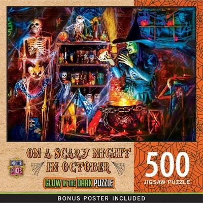 This MasterPieces 15″ x 21″ 500pc Halloween Glow in the Dark Puzzle is the perfect way to get into the holiday spirit, and the perfect Holiday present for friends and family. Celebrate spooky times and then turn off the light and watch it glow, if you dare. To reduce its impact on our environment, the chipboard used in this puzzle is made of recycled material.