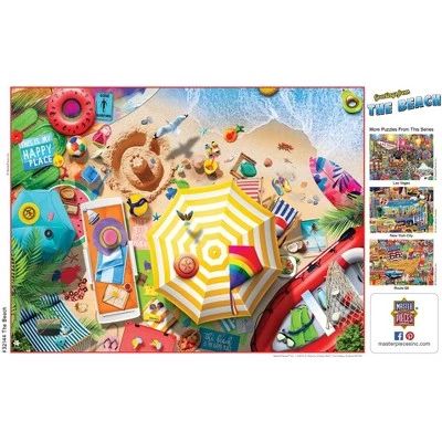 - These MasterPieces 24″ x 18″ 550PC puzzle. Welcome to the beach, where all the toys provide fun in the sun. To reduce their impact on our environment, the chipboard used in these puzzles is made of recycled material.