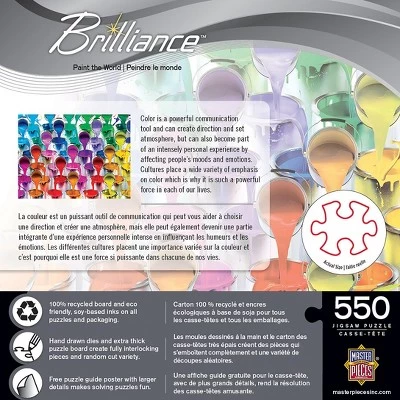 This MasterPieces 24″ x 18″ 550PC Brilliance Puzzle captures the brilliance of life. Colorful paint buckets fill and spill across the canvas. To reduce its impact on our environment, the chipboard used in this puzzle is made of recycled material.