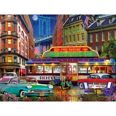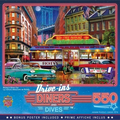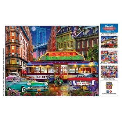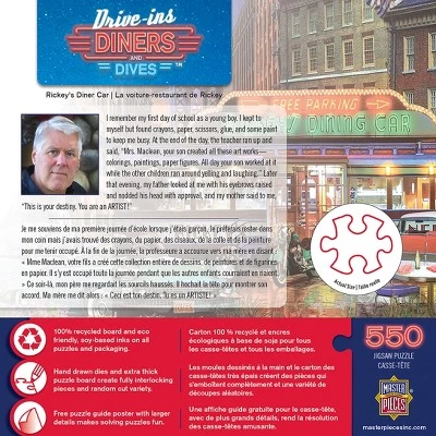 These MasterPieces 24″ x 18″ 550PC of Drive-Ins, Diners and Dives are fun nostalgia puzzles. Rickey’s Diner is always hopping in the heart of the city night lights. Classic Diners and Drive Ins still rules friday night fun and even the occasional Dive. To reduce their impact on our environment, the chipboard used in these puzzles is made of recycled material.
