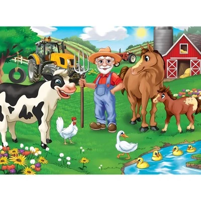 - Old MacDonald’s Farm puzzle featuring a bright orange tractor surrounded by horses, ducks, and chickens all ready for a day on the farm