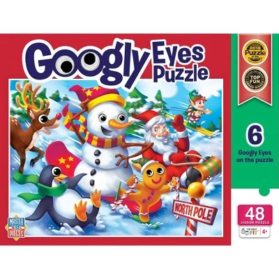 - Googly Eyes puzzle featuring Santa and his Christmas crew in a slipping, sliding, skiing, sledding, sleigh race