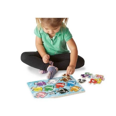 A,B,C, 1, 2, 3 and what color do you see? Help your child prepare for school with brightly colored peg puzzles that introduce letters, numbers and colors. Easy-grasp pegs and pictures under pieces make these three great matching activities ideal fun for learning and practicing fine motor skills.