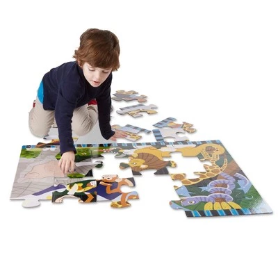 - 24-piece cardboard jigsaw floor puzzle with bright and colorful safari animal theme