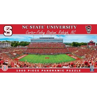 This MasterPieces NCAA 1000pc 13″ x 39″ Panoramic North Carolina State Puzzle features the view from the sky box seat of NC State University’s Carter-Finley Stadium with such incredible detail that it’s common for you to find yourself as part of the photograph! To reduce its impact on our environment, the chipboard used in this puzzle is made of recycled material.
