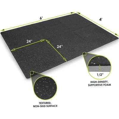 PROTECTIVE, PADDED FLOORING High-quality, textured tiles turn your hard floors into a comfortable, cushioned workout space.DUAL LAYER DESIGN Durable, non-skid rubber top layer with high-density EVA foam bottom layer creates the perfect shock-absorbent surface for your workoutsEASY ASSEMBLY The simple puzzle edge design makes assembly a breeze. Easily connect, disassemble and move tiles around.25 or 48 SQUARE FEET Each tile measures 24-in x 24-in x -in. Choose between 24 or 48 square feet. Includes border pieces for a clean, polished look.NON-SLIP & IMPACT-ABSORBENT The durable rubber top layer creates a non-slip, textured surface for your workouts. The high-density foam underneath absorbs impact and protects your floors from exercising and dropping equipment.