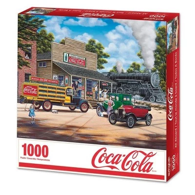Back in the day! The old steam engine passes by the general store as we step back in time to enjoy this scene of friends and family going about the hustle and bustle of their day while an American icon, Coca Cola, forms the background to it all. Copyright Jim Harrison, The Coca-Cola Company, Coca-Cola, Coke and the Contour Bottle Design, the Dynamic Ribbon device, the Red Disk Icon and the Coca-Cola Santa are trademarks of The Coca-Cola Company and in Canada, Coca-Cola, Ltd. All rights reserved. Allied Products Corporation is an official licensee of The Coca-Cola Company.