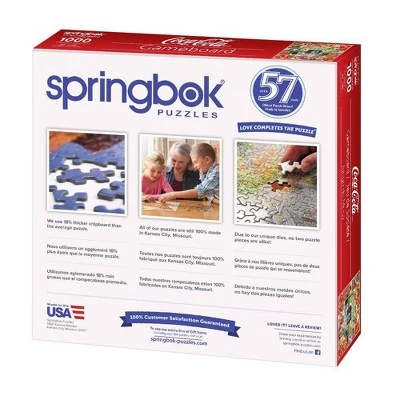 - UNIQUE CUT LARGE PIECES – Each puzzle piece is unique and never repeated; Springbok Puzzle pieces are made from thick cut 75 point board, 18% thicker than the industry average