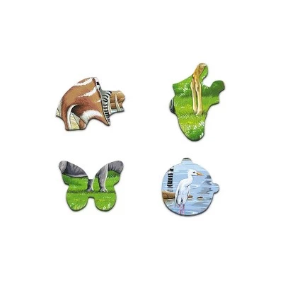 Many of the pieces are shaped as recognizable objects and animals, which adds another layer of dimensional thinking. Each puzzle is cut so deeply, that you can see the indent of the shapes in the tray – this is one of many Larsen’s outstanding hallmarks of quality.