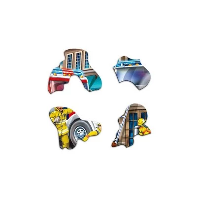 A fun puzzle depicting how firefighters work together as a team, and the different ways they fight to put out flames that threaten buildings.