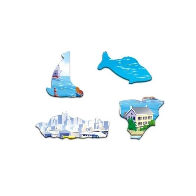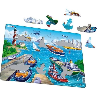 A fun puzzle depicting a harbor environment and the different things you see within them, such as boats, anchors, and propellers.