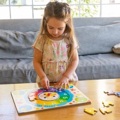 - Learn About Clocks & Telling Time – The Lift & Learn Clock Puzzle teaches children how the clock works and introduces the concept of telling the time in a fun, exploratory way.
